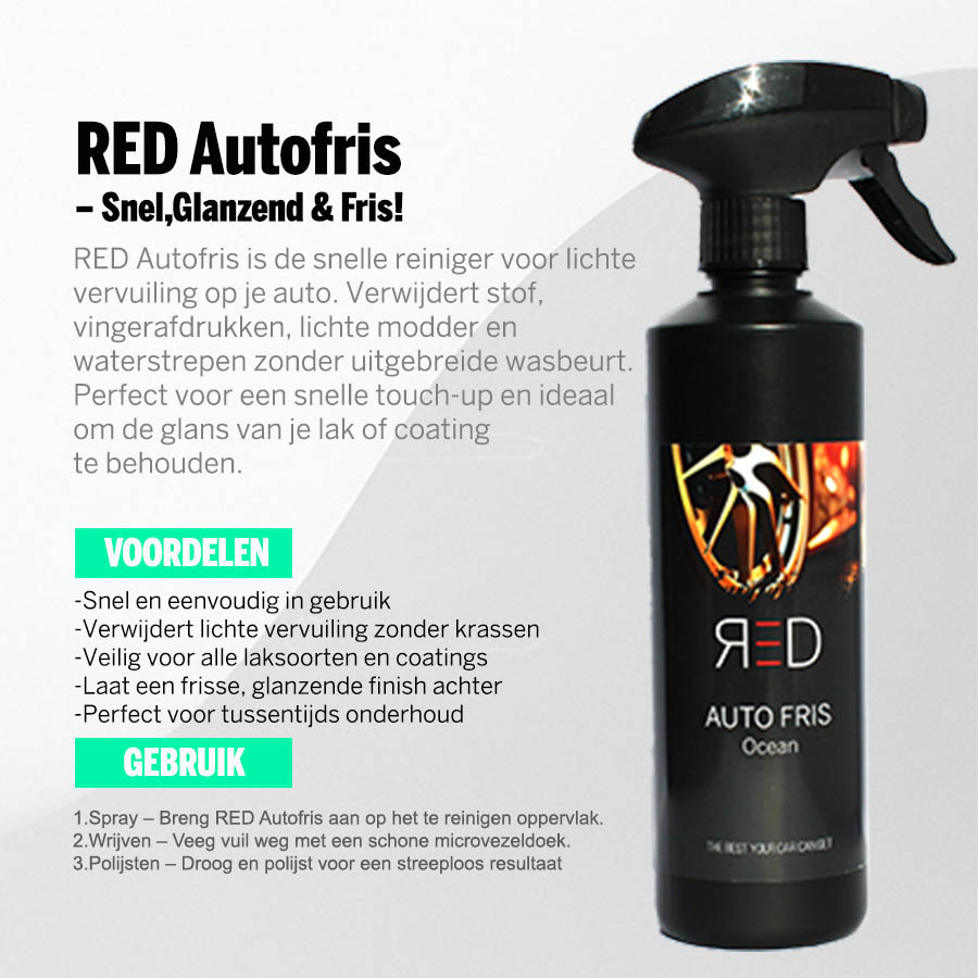Gratis RED Autofris 250ml – Voor een frisse geur in het interieur.