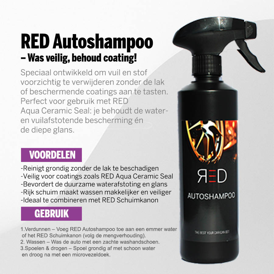 RED Autoshampoo 500ml – Reinigt en voegt direct een diepe glans toe.