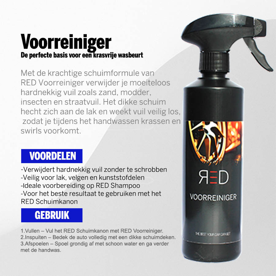 RED Voorreiniger 500ml – Verwijdert veilig zand, insecten en hardnekkig vuil.